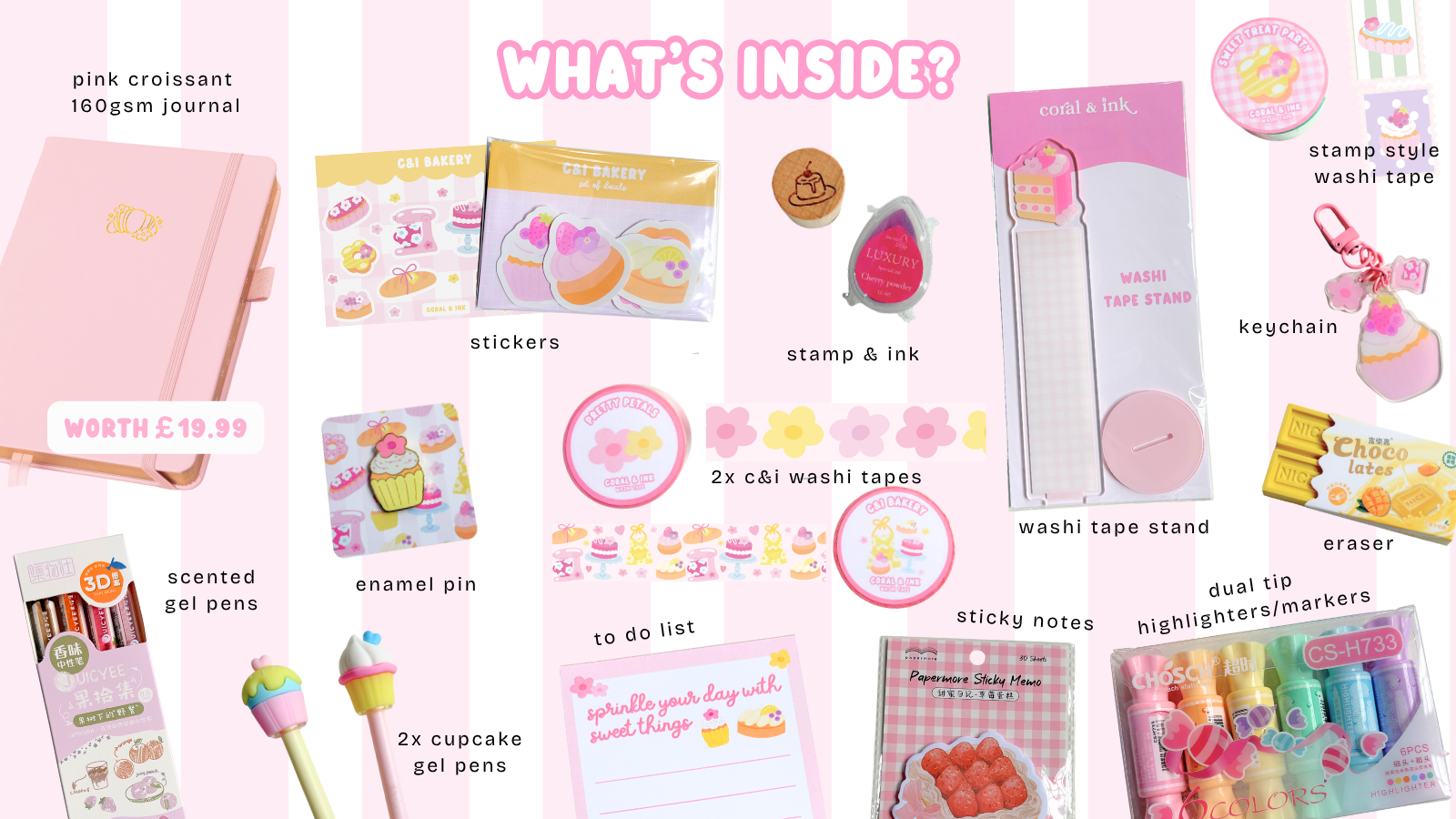 Packaged inside the most adorable Bakery themed box you'll find a treasure trove of sweet treat themed stationery goodies, worth in total over £100!* (that's a 25% saving!)🍰